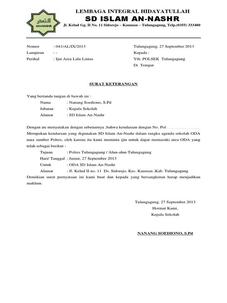 Contoh surat izin tidak sekolah tingkat sd.